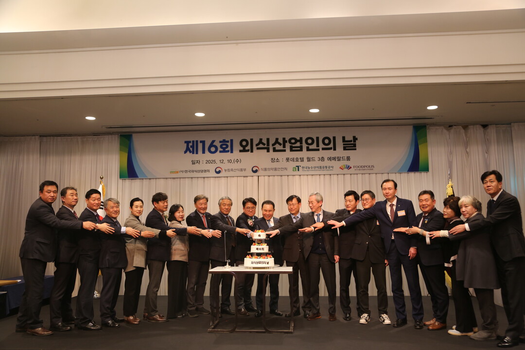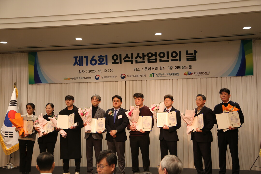 [Cook&Chef = 이경엽 기자] 대한민국 외식산업의 오늘을 위로하고 내일을 다짐하는 '(사)한국외식산업협회 제16회 외식산업인의 날' 행사가 10일 오후 서울 잠실 롯데호텔 월드에서 성황리에 개최됐다. 이번 행사는 고물가, 구인난, 내수 침체라는 사상 최악의 '3각 파도' 속에서도 묵묵히 현장을 지키며 'K-푸드'의 가치를 높여온 외식인들을 격려하기 위해 마련됐다.