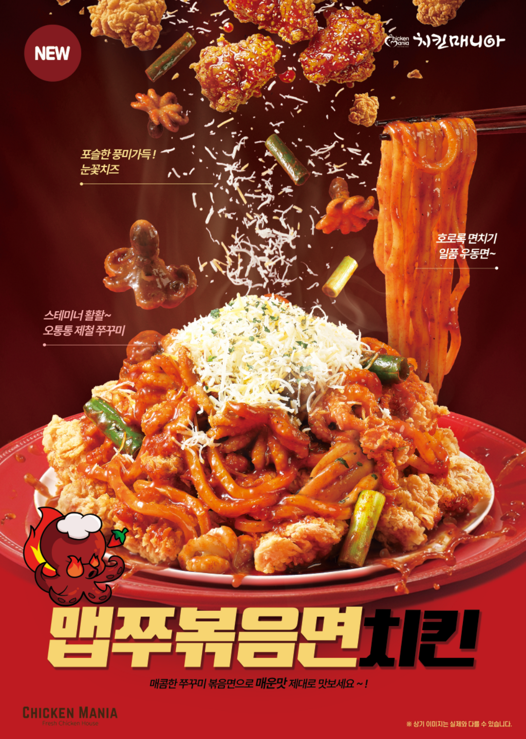 [Cook&Chef = 김세온 기자] 치킨 브랜드 치킨매니아가 쭈꾸미를 활용한 신메뉴 ‘맵쭈볶음면치킨’을 출시한다.
