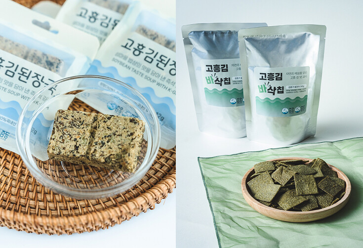 고흥김으로 만든 김 된장국과 김스낵. 사진 = 고흥군