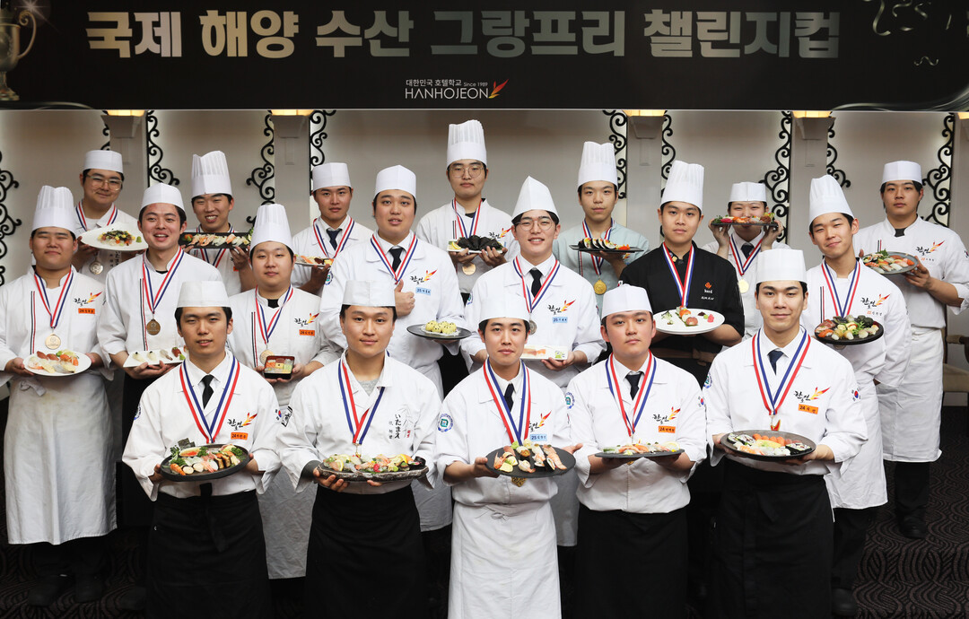 [Cook&Chef = 조용수 기자] (재) 한국호텔관광교육재단이 주최한 2025 국제 해양 수산 그랑프리 챌린지컵 대회가 지난 11월 7일 오전 10시부터 오후 1시까지 안산 한국호텔관광전문학교 창조관 일식 실습실에서 개최되었다.